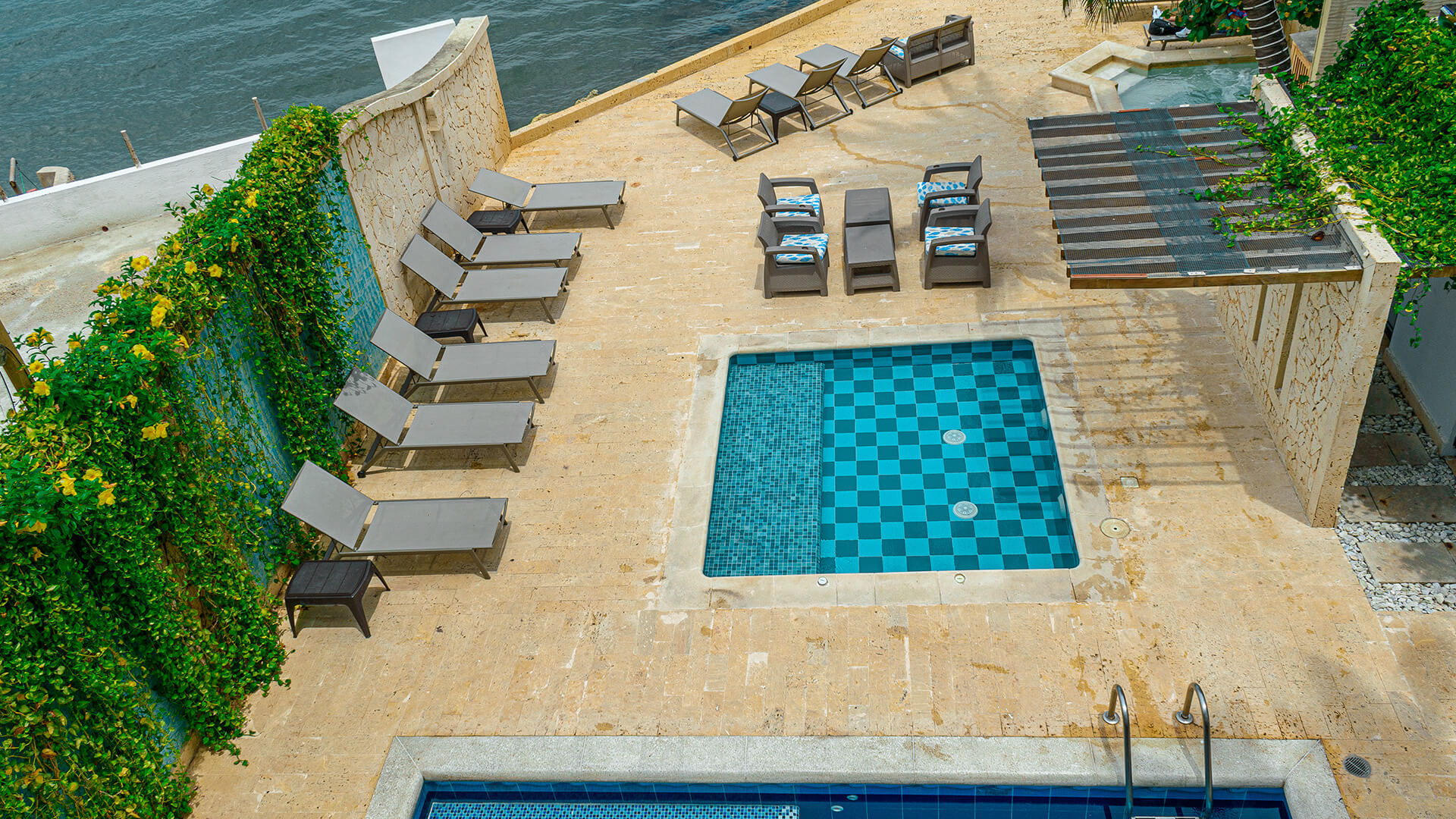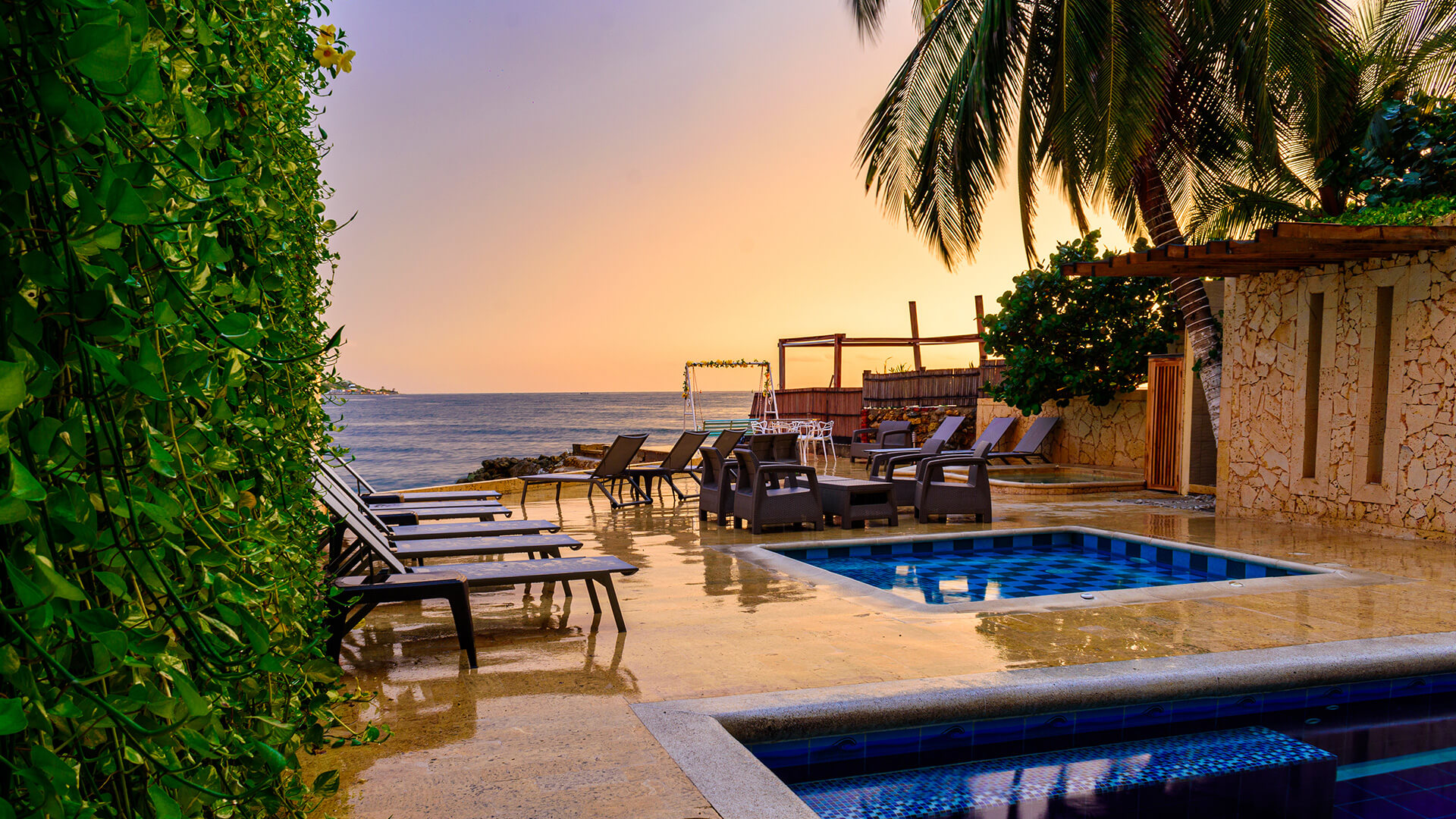 Ubicado frente al mar, el Hotel Caribbean Cartagena tiene espacios con mucho estilo, diseñados para el confort y el descanso. Sus habitaciones, algunas con vista al mar, invitan a disfrutar de la cercanía única con el horizonte de Cartagena. El hotel ofrece una completa zona húmeda con jacuzzi al aire libre, piscinas y áreas ideales para relajarse bajo el sol del Caribe. Desde su terraza, los huéspedes pueden acercarse al mar, sentirlo presente en todo momento y contemplar atardeceres inolvidables. Además, su restaurante complementa la experiencia con una mezcla de sabores locales e internacionales que convierten cada comida en un deleite. Ya sea para una escapada romántica, unas vacaciones familiares o un viaje de amigos, el Hotel Caribbean Cartagena está pensado para crear experiencias inolvidables.