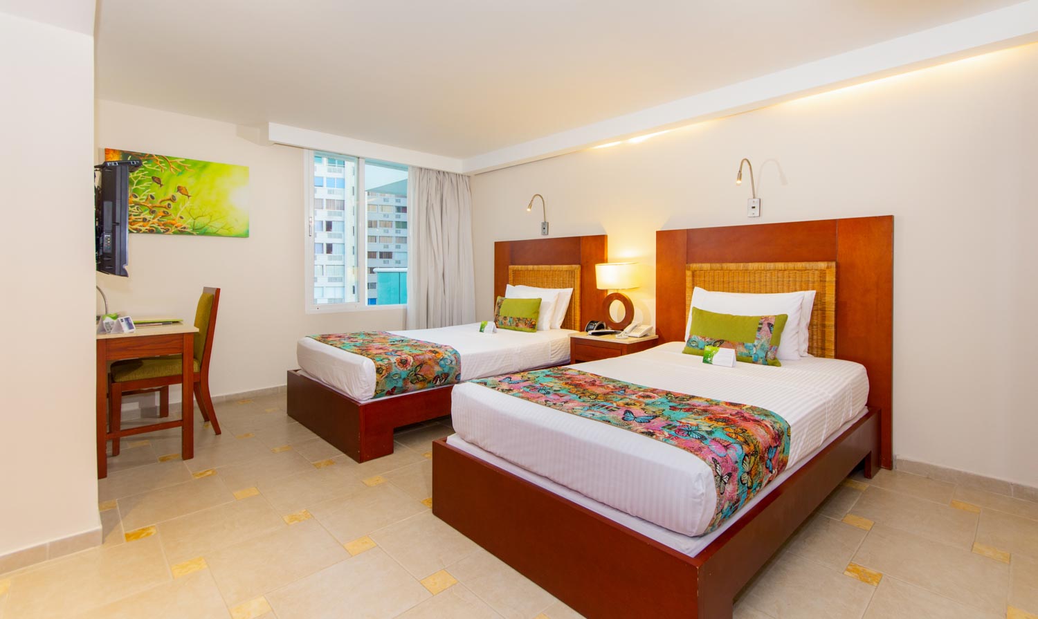El Hotel Dann Cartagena, se encuentra ubicado en el Barrio del Laguito en la zona turística de Cartagena, se caracteriza por su ubicación y acceso directo a la playa. Posee 19 pisos con 105 habitaciones amplias, modernas y renovadas que garantizar el confort, tranquilidad y descanso para cada uno de nuestros participantes. Sus habitaciones están equipadas para brindar a nuestros clientes una estadía placentera, bienestar, pueden disfrutar de una hermosa vista al mar o la bahía. Tienen conexión gratuita a internet wi fi. Posee una piscina en el primer nivel para adultos y niños, Restaurante Bucaneros, tiene una gran variedad para que puedan deleitarse con nuestros platillos de comida típica Cartagenera e internacional. Su servicio es personalizado, su talento humano es una parte fundamental en el desarrollo de nuestra operación, por el compromiso, honestidad, lealtad, amabilidad que nos caracteriza. Unico hotel en el sector de Bocagrande, que tiene acceso directo a la playa.
