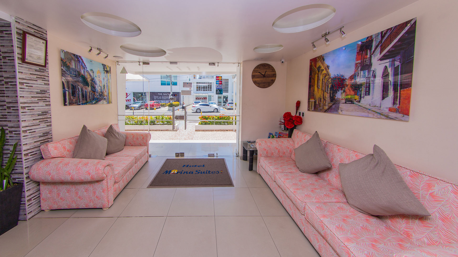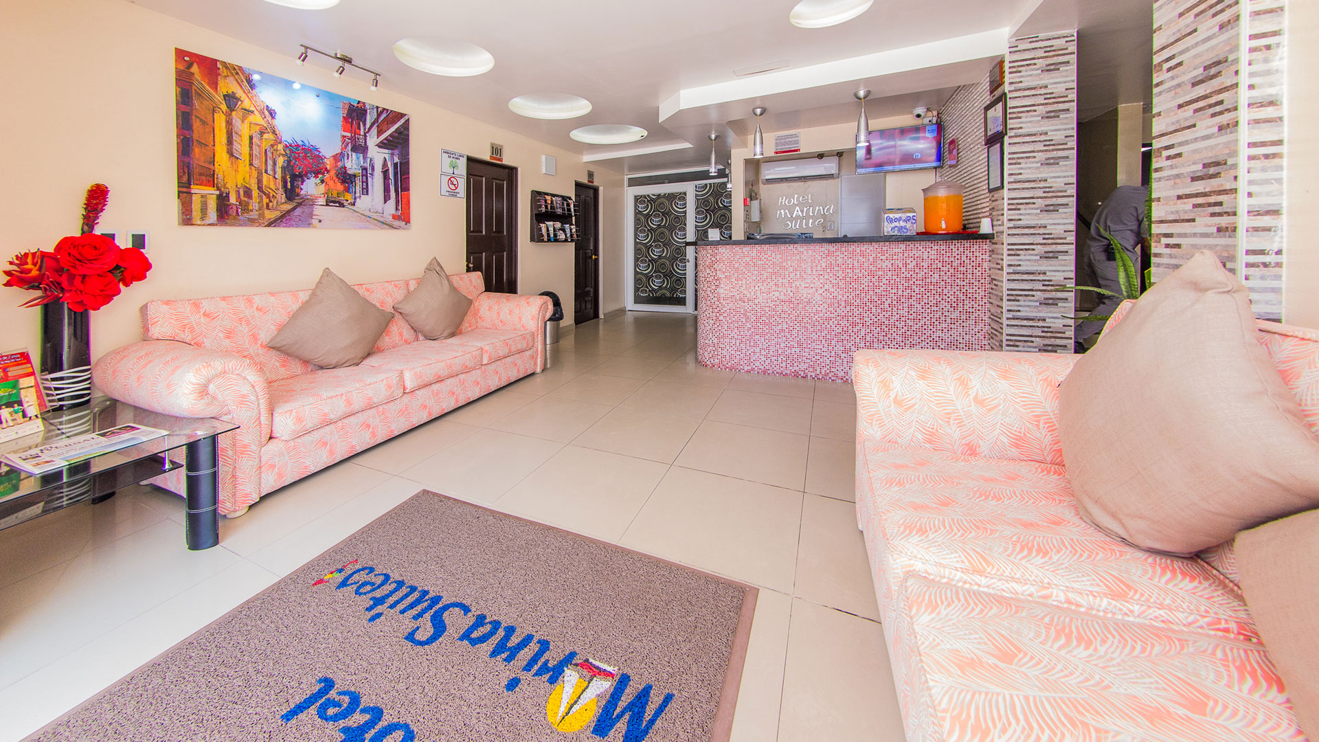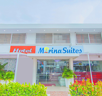 El Hotel Marina Suites es una hermosa propiedad con 42 habitaciones diseñadas para el descanso y relax, con las comodidades necesarias para el disfrute de tus vacaciones en pareja, amigos, familia o para tus actividades de negocios o eventos en la ciudad. Nos encontramos ubicados a pocos metros del mar caribe colombiano, a tan solo 10 minutos del centro amurallado de la bella e histórica ciudad de Cartagena de Indias y rodeados de reconocidos sitios de interés como restaurantes y modernos centros comerciales. Ofrecemos, además, las tarifas más económicas de nuestro segmento garantizando a nuestros clientes un excelente servicio y una experiencia de calidades y amabilidad que lo hará sentir como lo importantes que es.