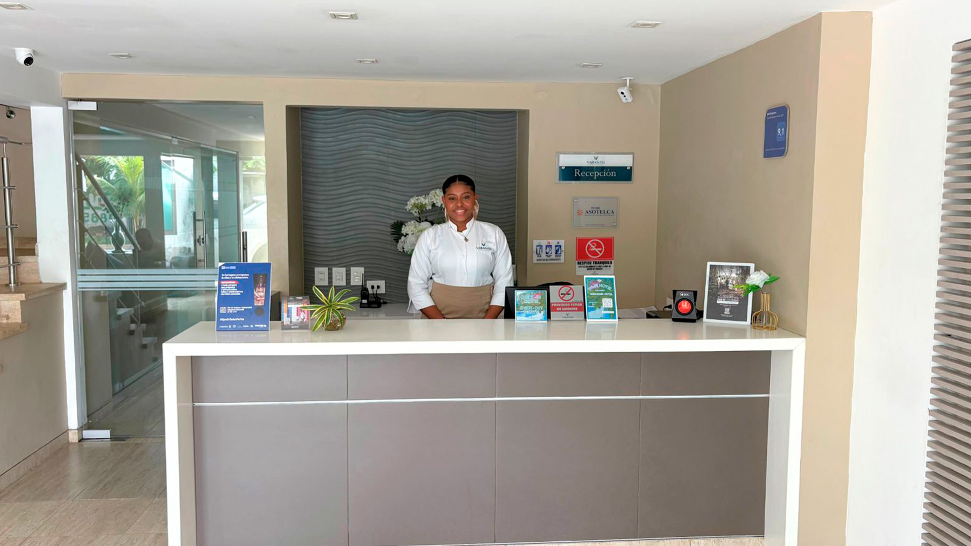 Descubre un oasis de tranquilidad y confort en el exclusivo Hotel Boutique VARANASI estratégicamente ubicado frente al aeropuerto Internacional Rafael Núñez de la ciudad de Cartagena ,desde donde podrás trasladarte fácilmente a las principales zonas comerciales y turísticas de la ciudad. Nuestro Hotel es ideal para viajeros de negocios y familias, ofrece un servicio excepcional, reconocido y altamente calificado en los principales portales de opiniones. Disfruta de Cartagena mientras te relajas en un ambiente tranquilo, seguro y acogedor. Experimenta la combinación perfecta de comodidad, conveniencia y servicio de calidad en tu próxima visita a Cartagena. En sus instalaciones podrás encontrar servicio de restaurante, bar y zona de piscina, sus habitaciones cuentan con todas las amenidades para un confort garantizado.